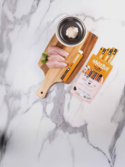 Frango, atum, salmão e camarão frescos transformados em um snack funcional que hidrata, nutre e apoia a saúde diária do seu gato.